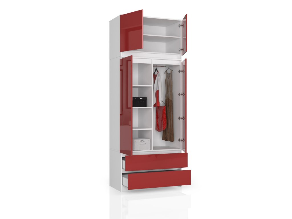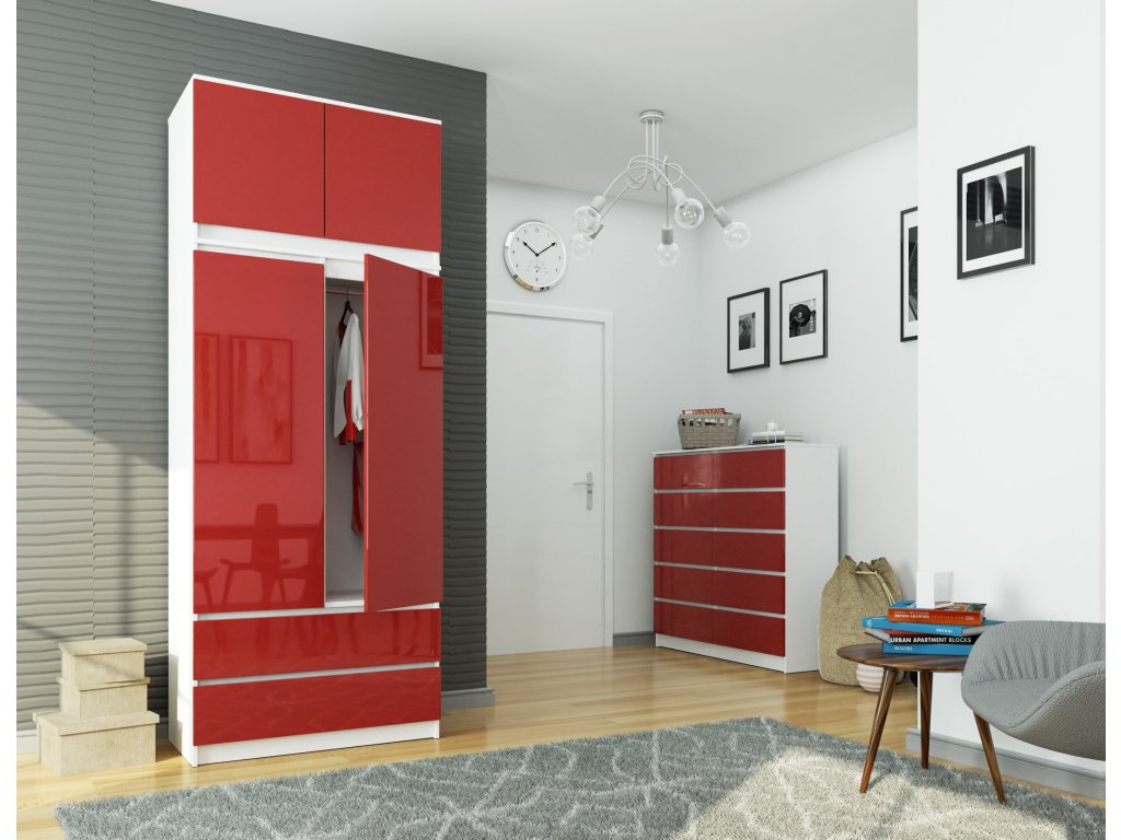Šatní skříň POKI90: Odvážná kombinace bílé a červeného lesku pro vaši ložnici
