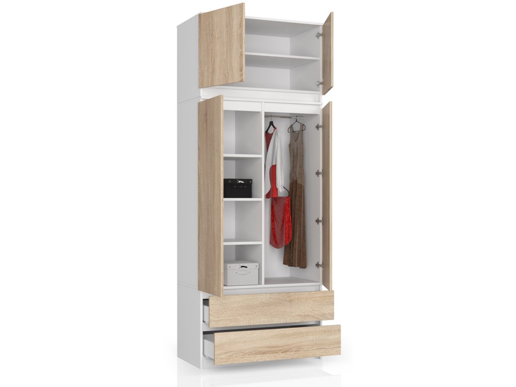 Vyrobeno z vysoce kvalitního materiálu LTD, tato skříň vyniká odolností a dlouhou životností. Zaujme vás kombinace bílé barvy a elegantního dubu Sonoma, což jí dodává sofistikovaný vzhled.