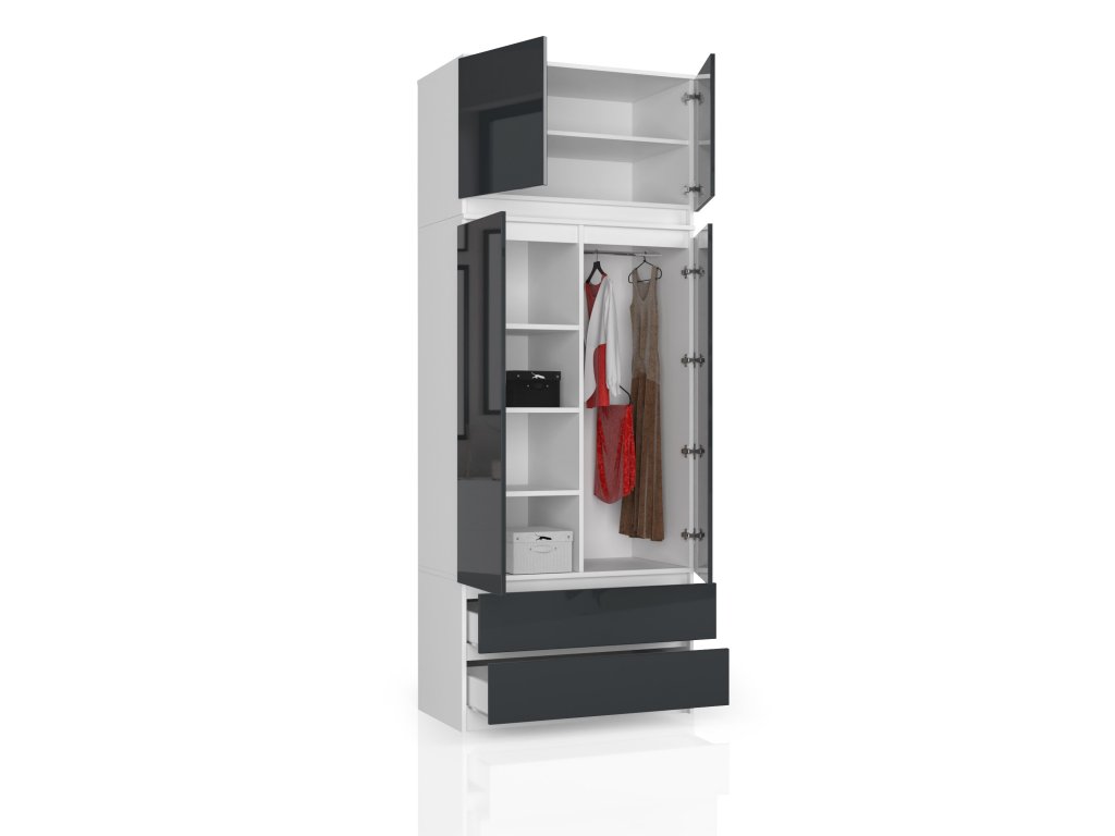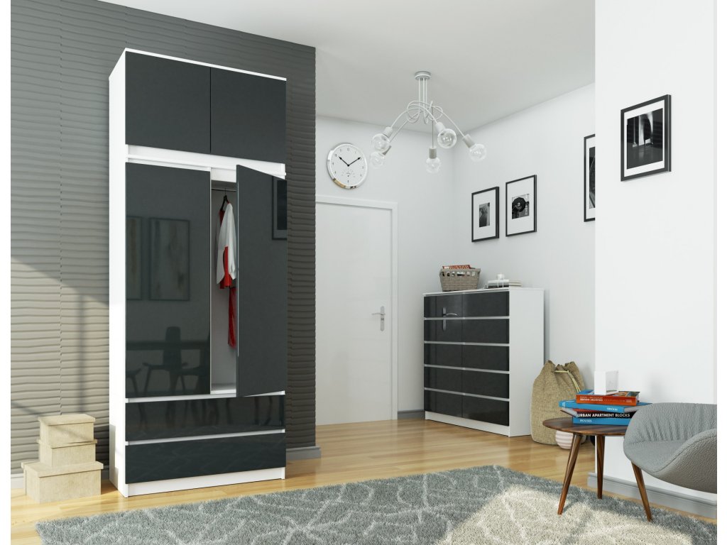 Šatníková skříň POKI90, bílá / grafitový lesk