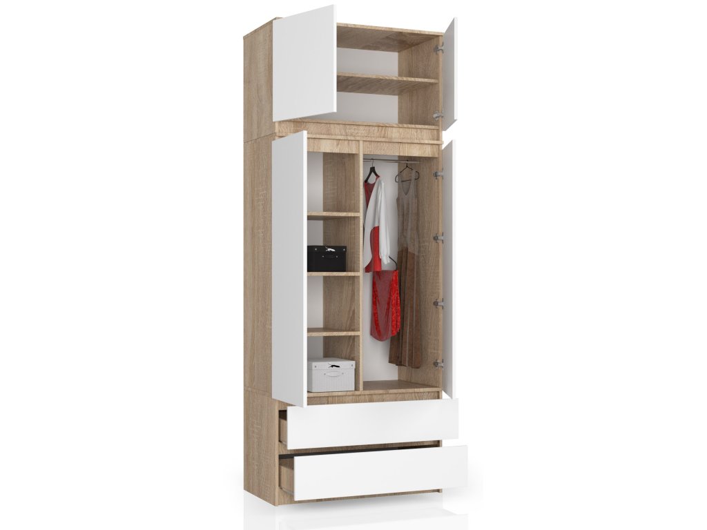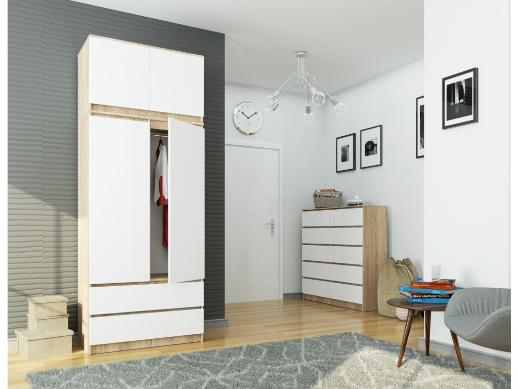 Odhalte kouzlo spojení dubu Sonoma a čisté bílé barvy s naší nejnovější šatní skříní POKI90. Navržena s myšlenkou na dokonalou harmonii v každé ložnici, tato skříň se stane nejen užitečným úložným prostorem, ale také estetickým doplňkem vašeho interiéru.