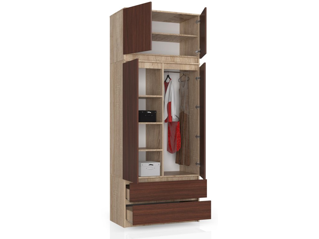 Šatníková skříň POKI90, dub Sonoma / wenge