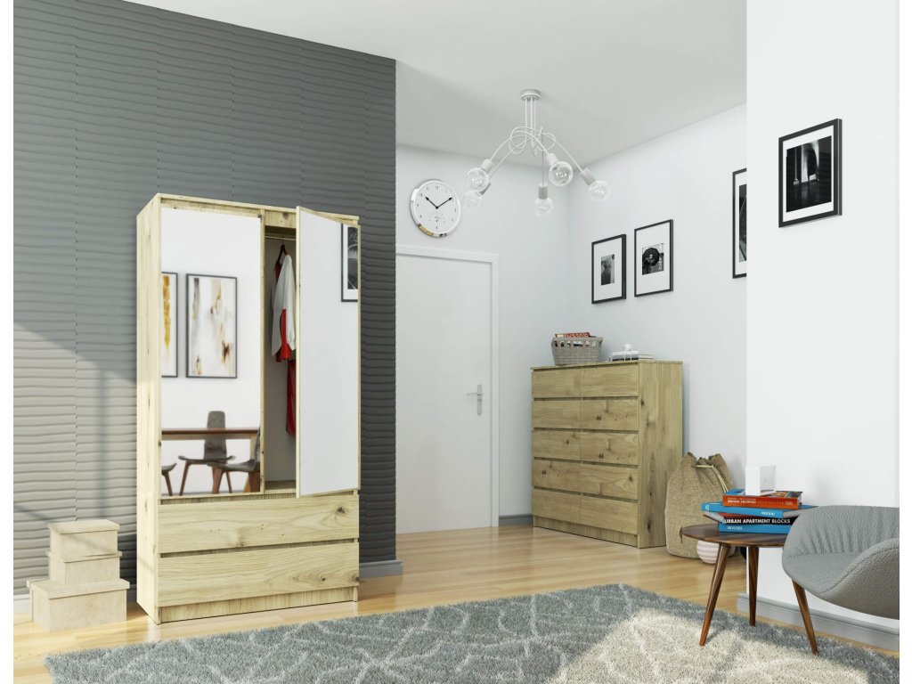 Seznamte se s dokonalým doplňkem vaší ložnice: šatní skříň SPACE90. Její design v odstínu dub Artisan ztělesňuje půvab přírodního dřeva, přičemž nabízí moderní a praktický úložný prostor.