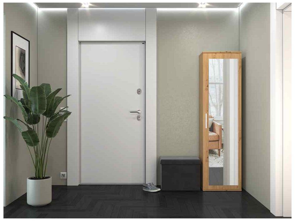 Šatní skříň WARREN vám umožní snadno organizovat vaše oblečení a doplňky díky 1-3 policím, zrcadlu a šatní tyči. Dveře s elegantními madly dodávají celé skříni luxusní vzhled.
