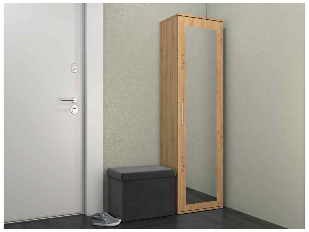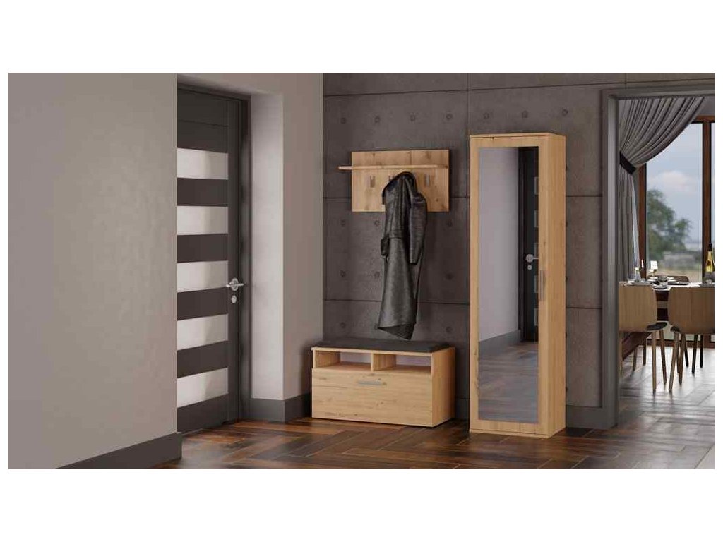 Tato šatní skříň je ideálním řešením pro ty, kteří hledají praktický a stylový úložný prostor do předsíně. Její rozměry jsou dostatečně kompaktní, aby se vešla i do menších prostor, a zároveň nabízí dostatek místa pro vaši kolekci oblečení.