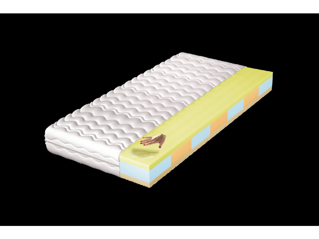 Vrchní vrstvy tvoří vysokoelastická VISCO pěna o tloušťce 3 cm. VISCO pěna s paměťovým efektem reaguje na teplo a tlak a optimálně se přizpůsobí křivkám Vašeho těla a tím uvolňuje svalstvo a klouby. Výška matrace: 18 cm. Rozměry: 90 x 200 cm.