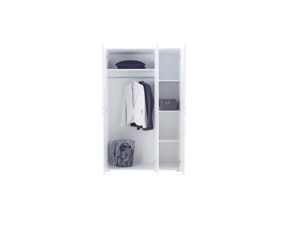 Šatní skříň je vyrobena z kvalitních LTD desek. Jsou nenáročné na údržbu. Šatní skříň je třídveřová. Uvnitř se nachází šatní tyč a 4 police.