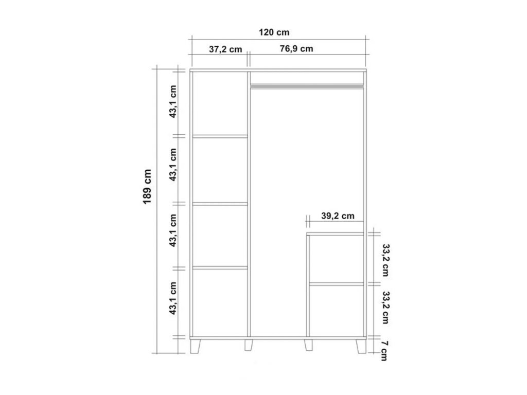 Skříň SELENA je navržena tak, aby poskytovala dostatek úložného prostoru. Šatní tyč umožňuje zavěšení oděvů, zatímco čtyři police jsou ideální pro složené oblečení, doplňky nebo jiné předměty. Díky dvěma velkým dveřím je přístup do skříně snadný a pohodlný.
