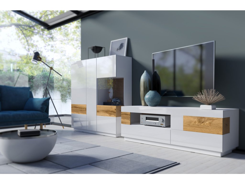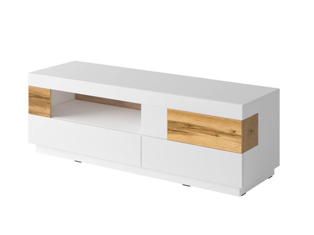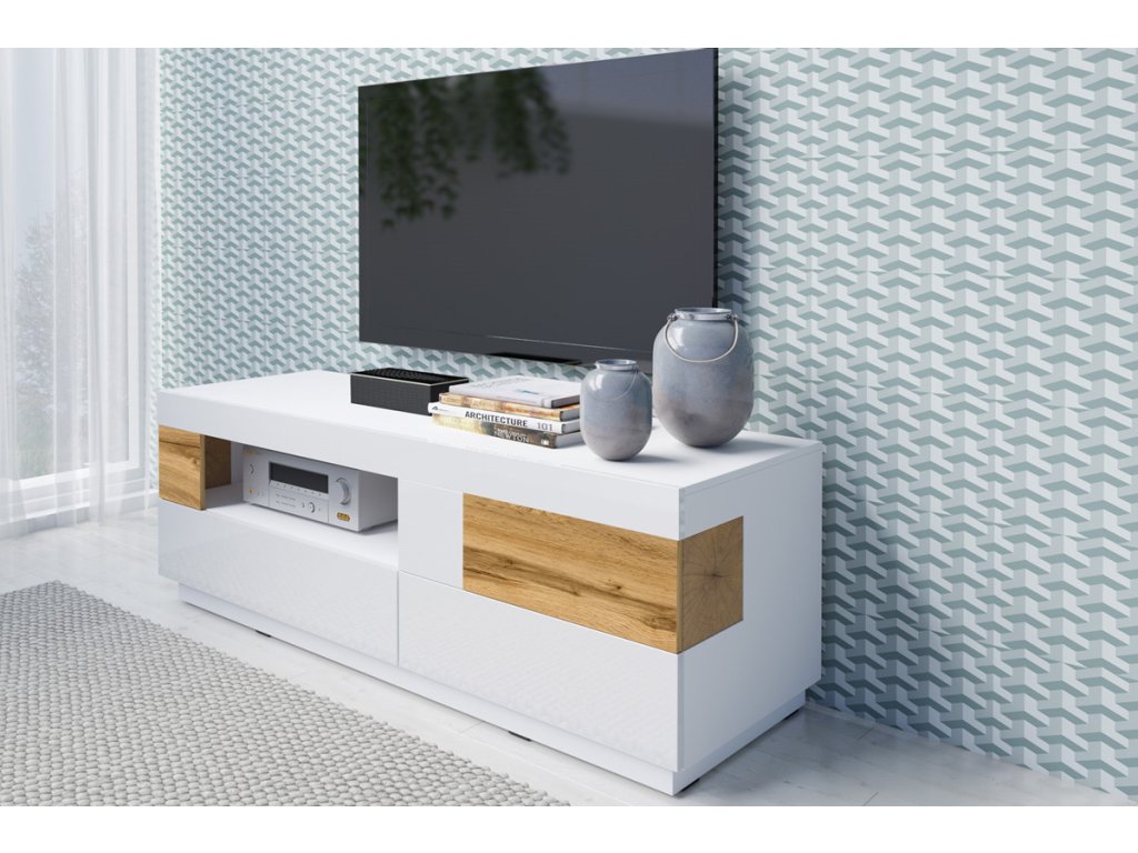SELINKA 41 TV stolek 2 šuplíkový, bílý lesk/dub wotan