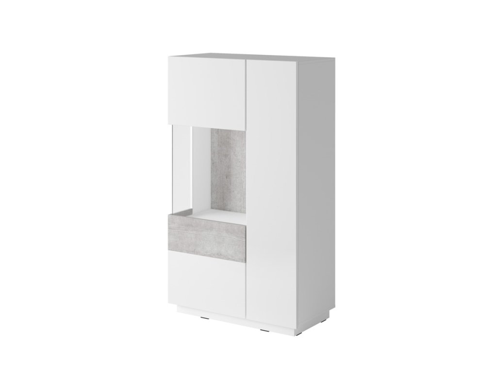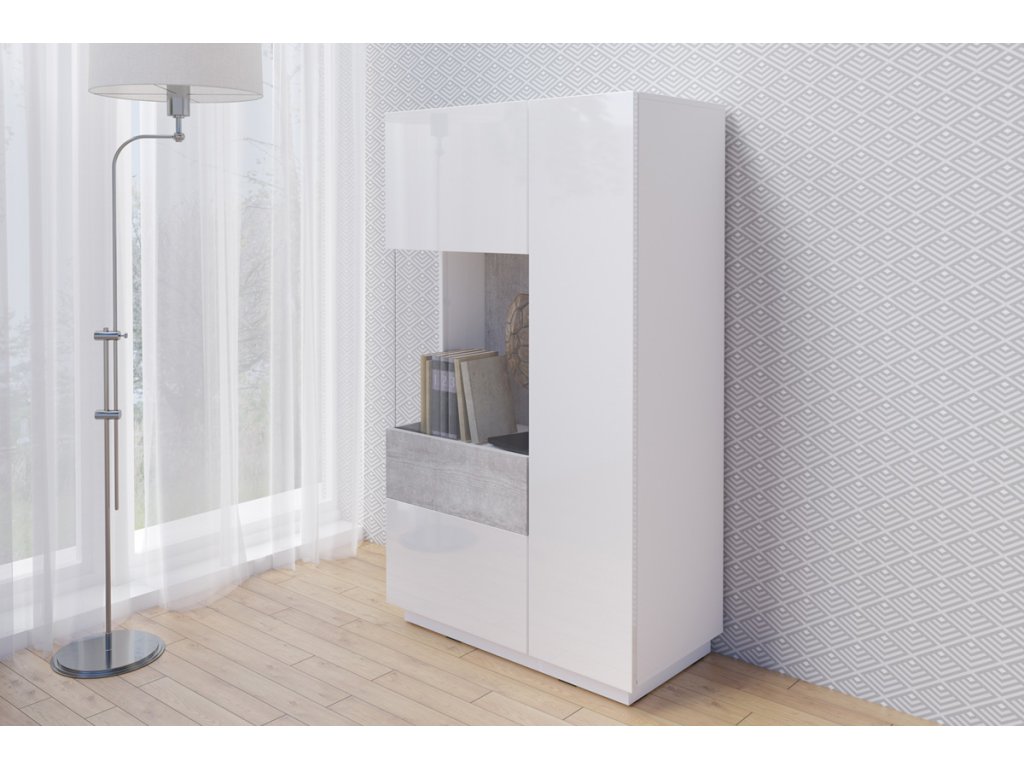 SELINKA 42 dvoudveřová vitrína levá, bílý lesk/beton Colorado