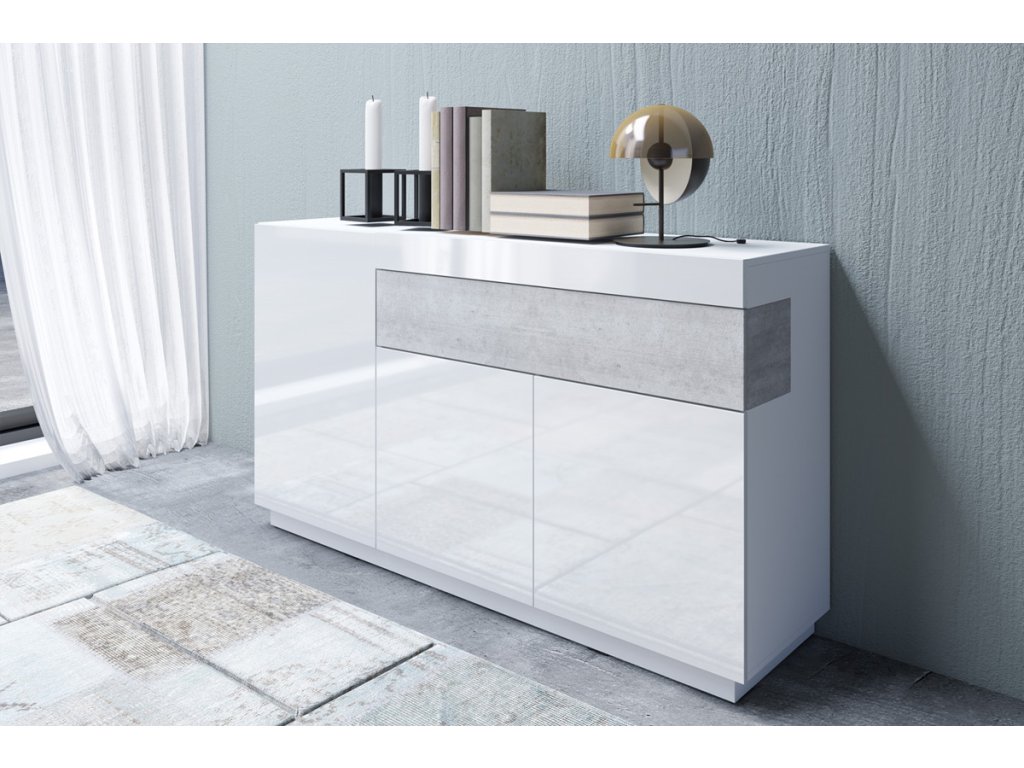 SELINKA 43 kombinovaná komoda 3d1s, bílý lesk/beton Colorado