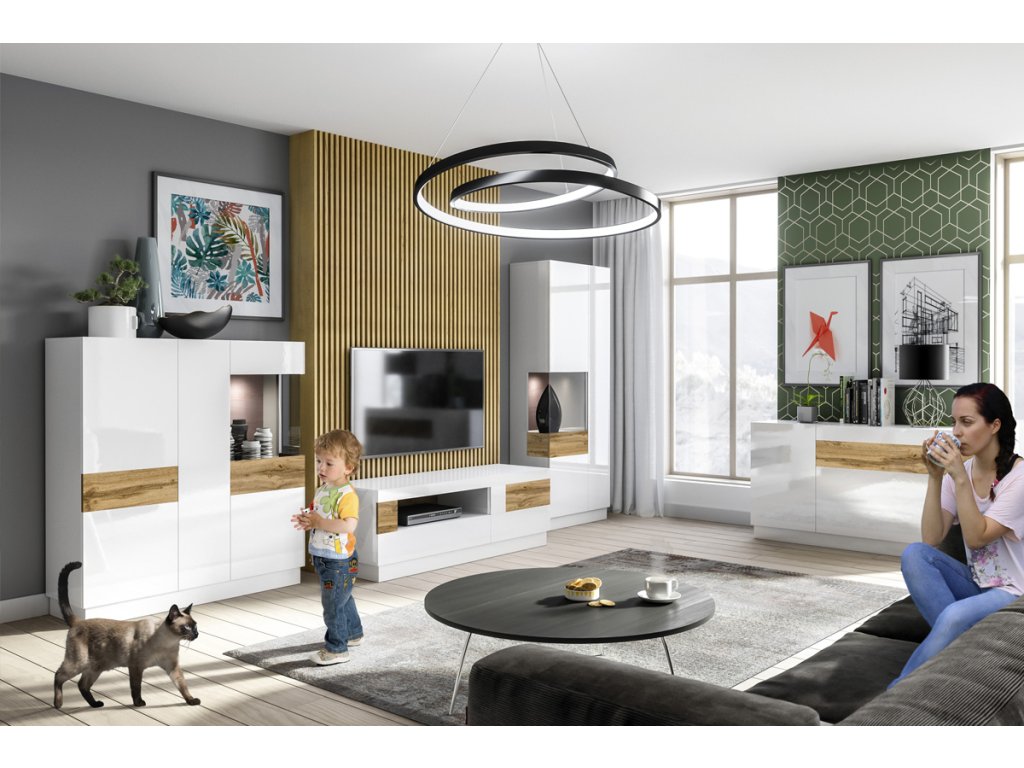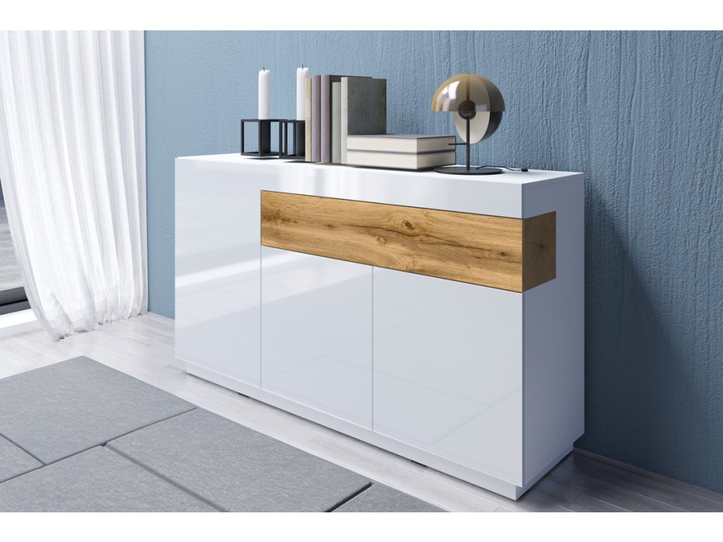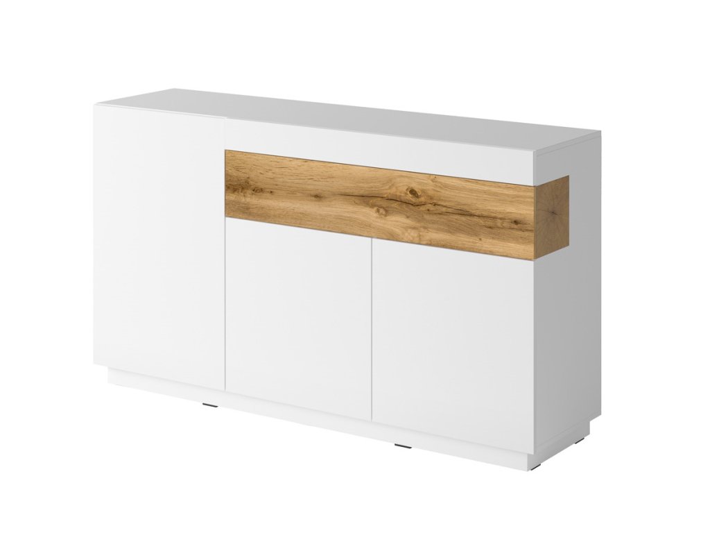 SELINKA 43 kombinovaná komoda 3d1s, bílý lesk / dub Wotan