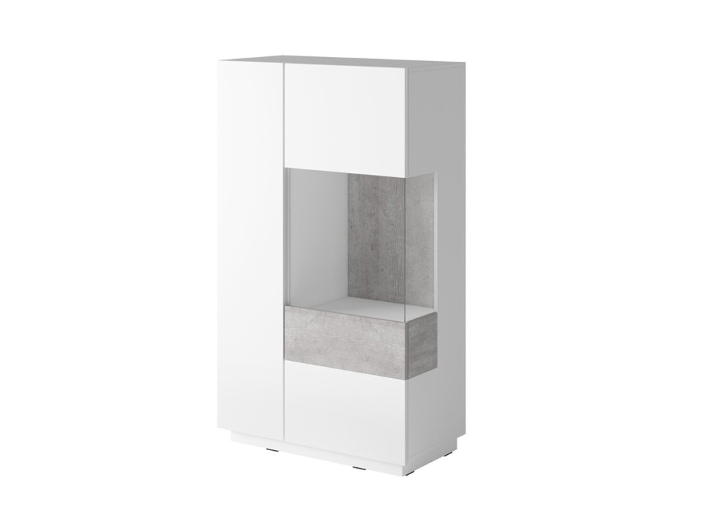 SELINKA 44 dvoudveřová vitrína pravá, bílý lesk/beton Colorado