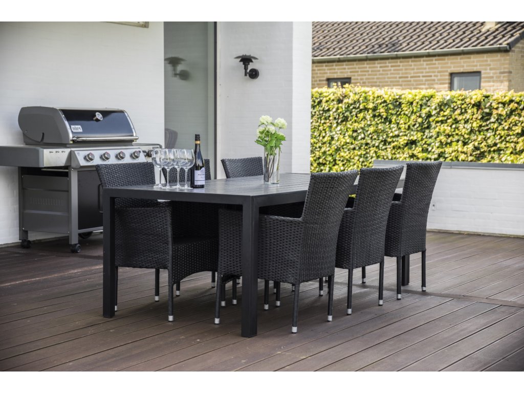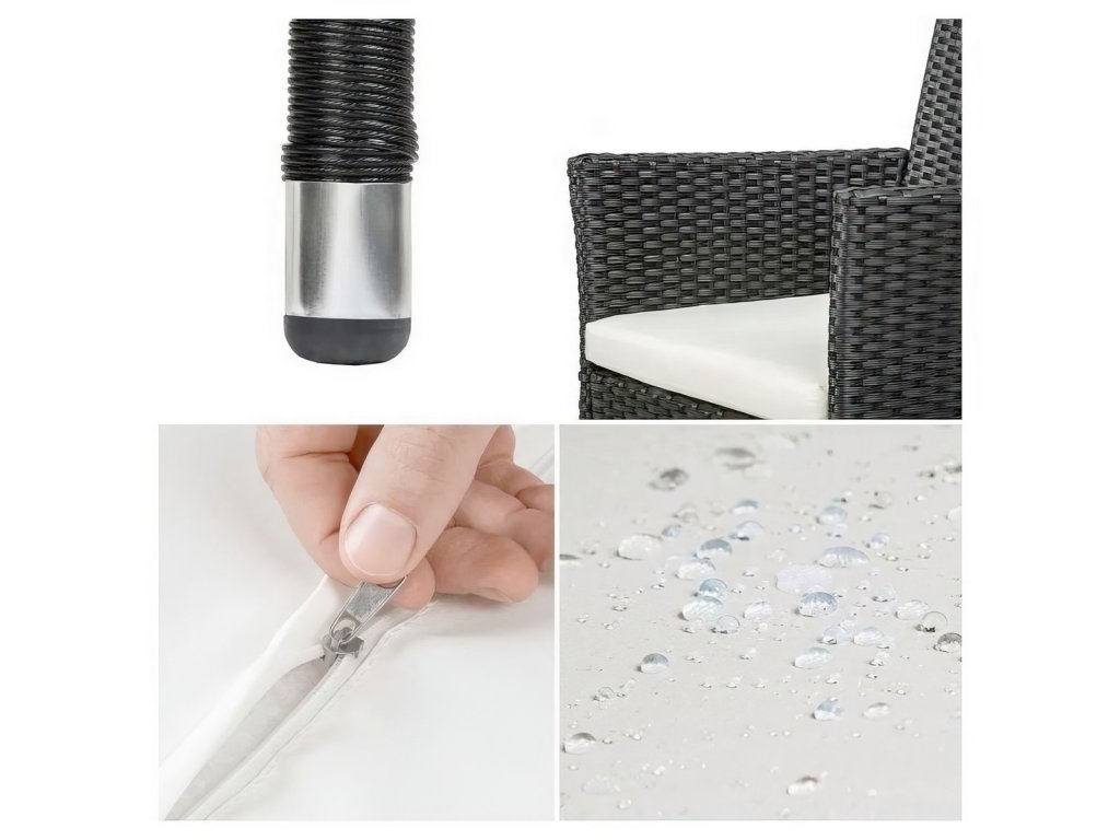 Konstrukce křesla HAMBURG je vyrobeno z kovu, barevné provedení umělého ratanu je antracit. Použití hliníkové konstrukce pro zahradní nábytek, který potřebuje odolávat zvýšené vlhkosti, je právě tou správnou volbou. Hliníková konstrukce je lehká a nerezaví. Díky tomu s takovou konstrukcí budete bez starostí. Jako bonus zdarma dodáváme včetně sedáku černé barvy, rozměr 46 x 47 x 3 cm (potah snímatelný pratelný).