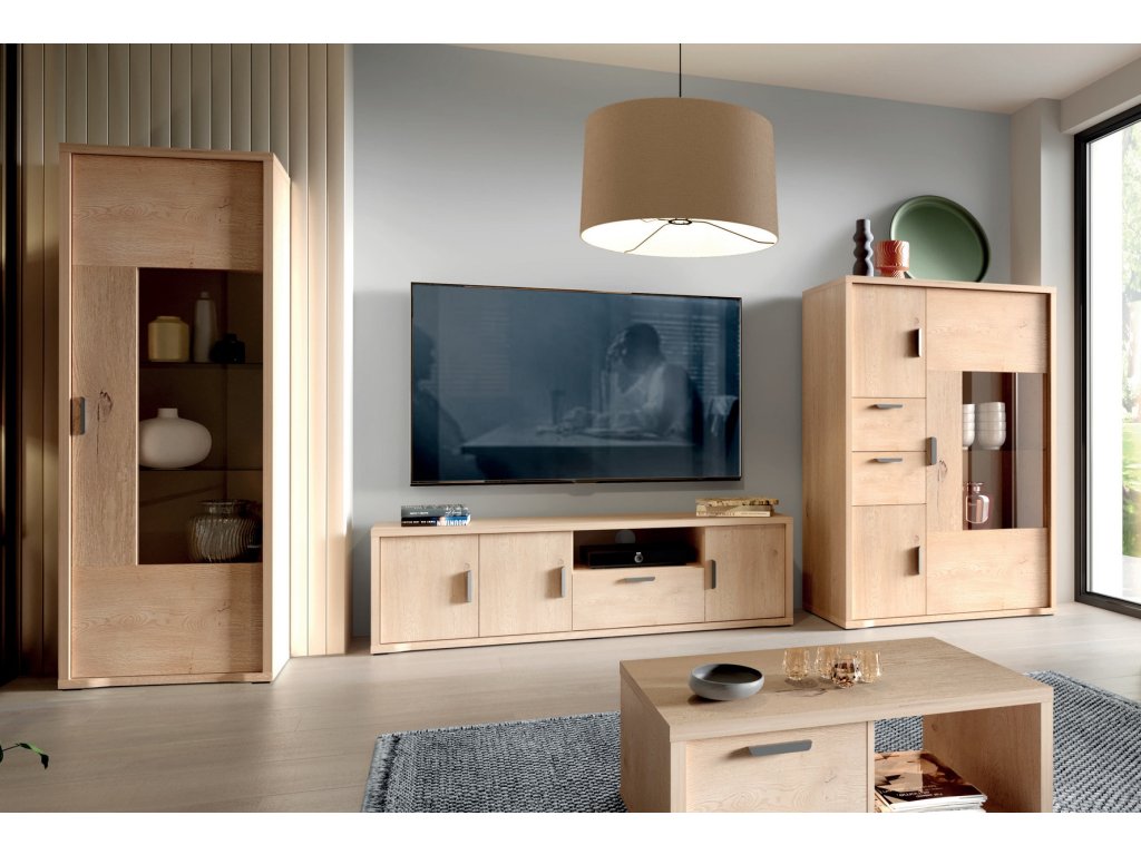 Elegantní a praktická obývací stěna v dekoru dub krémový přináší teplý přírodní vzhled do každého interiéru.