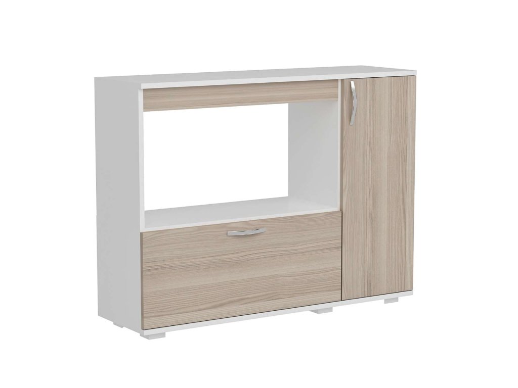 Vylepšete svou kuchyni s elegantní a praktickou skříňkou na mikrovlnku SHARLOTTE. Tato moderní skříňka kombinuje bílou a světle hnědou barvu, což ji činí stylovým a funkčním doplňkem pro každý kuchyňský prostor.