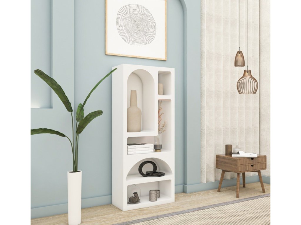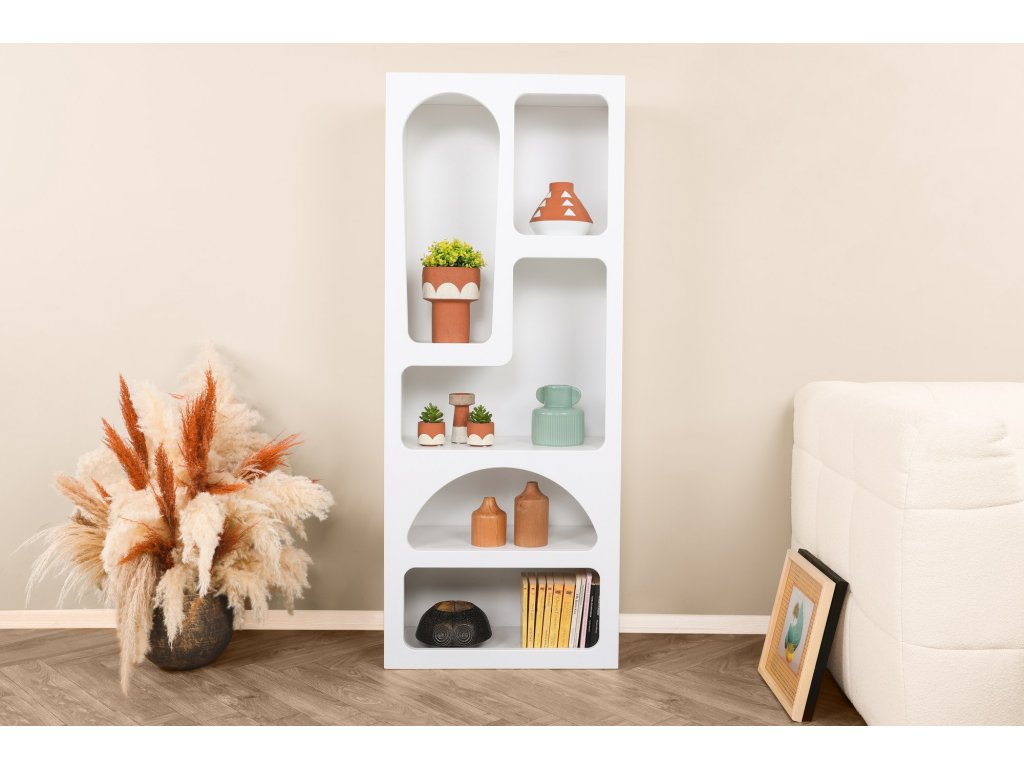 Knihovna SHEEN obsahuje čtyři prostorné police, které poskytují dostatek místa pro knihy, dekorace, rostliny nebo další předměty. Díky čistě bílému provedení se snadno začlení do jakéhokoliv interiéru a dodá místnosti svěží a vzdušný vzhled.
