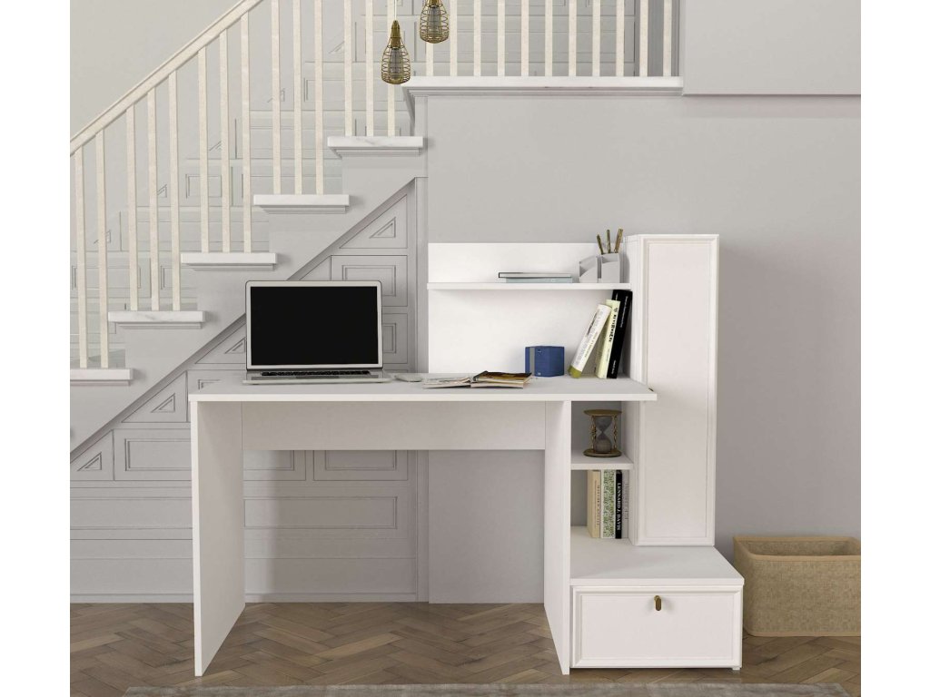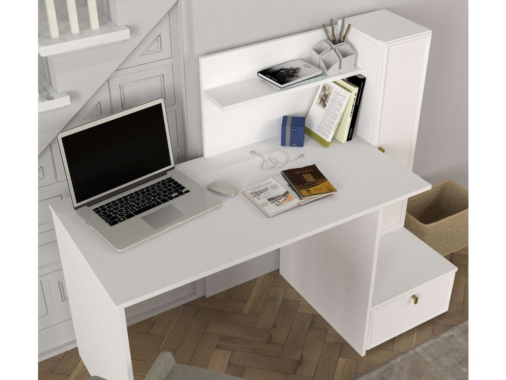Písací stůl SHELDON je vyroben z kvalitního LTD materiálu s tloušťkou 18 mm, což zajišťuje jeho pevnost a dlouhou životnost. Stylový bílý design dodává stolu moderní a čistý vzhled, který se hodí do jakéhokoliv interiéru. Stůl je vybaven praktickým regálkem, který poskytuje dostatek úložného prostoru pro vaše pracovní potřeby a pomůcky.