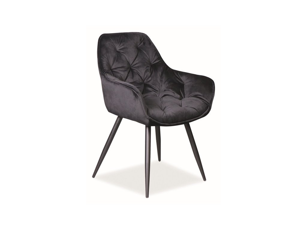 Čalouněná jídelní židle SHERRY VELVET je v atraktivním a moderním provedení. Je vhodná do různých typů interiérů, kuchyně či jídelny. Sedák s opěrkou jsou očalouněny kvalitní sametovou látkou Bluvel 19 v černém barevném provedení. Konstrukce židle je vyrobena z kovu v černé barvě.