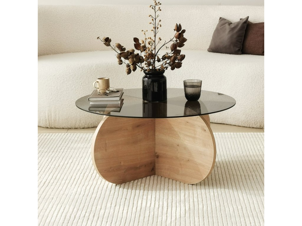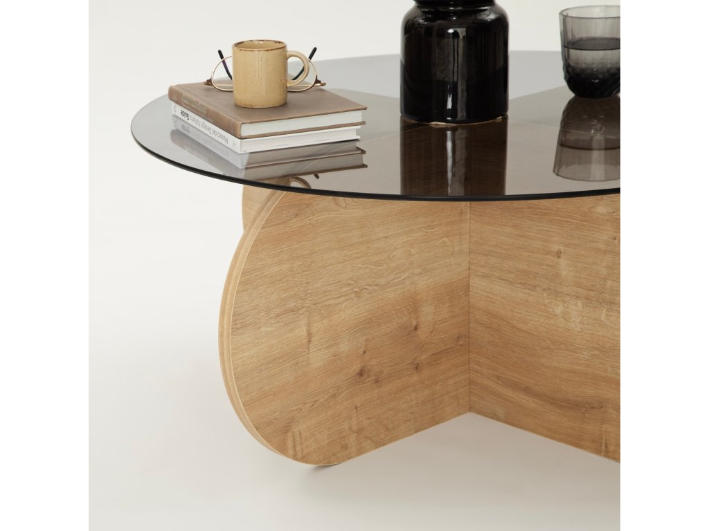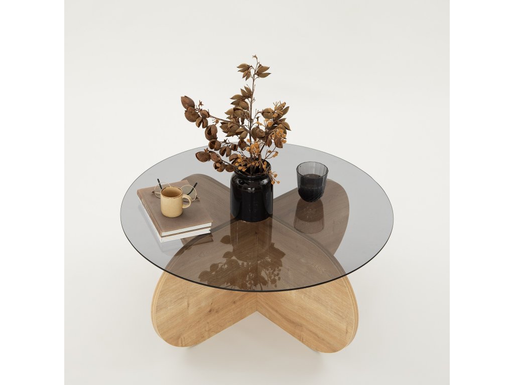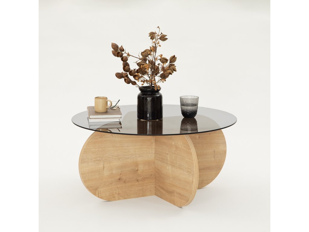Konferenční stolek SHRINE spojuje moderní design s funkčností a stává se stylovým doplňkem vašeho obývacího pokoje. Díky kulatému tvaru a kombinaci dubového dekoru se šedými prvky vytváří harmonii a dodává interiéru sofistikovaný vzhled.