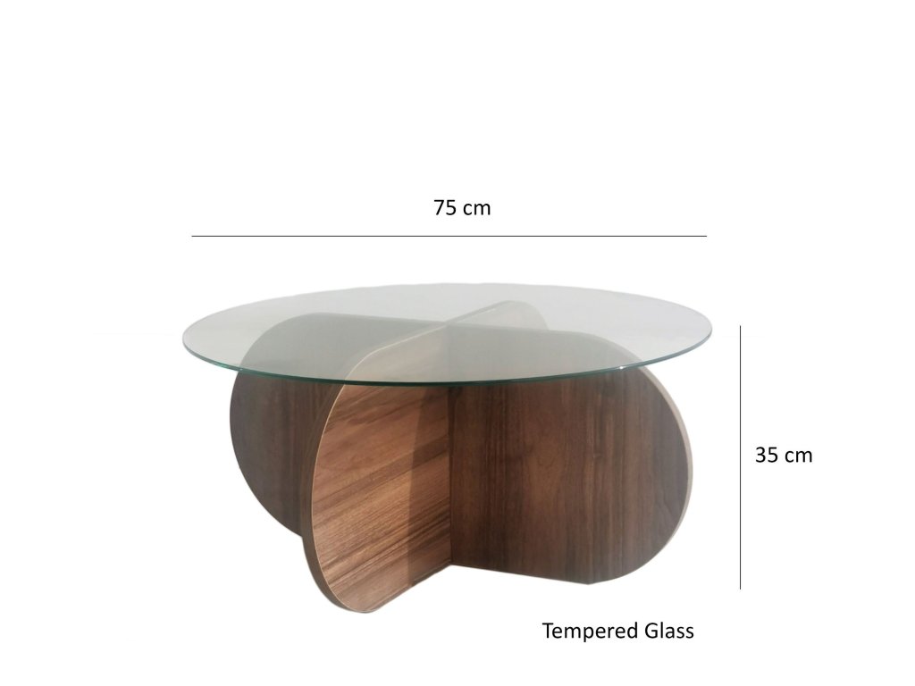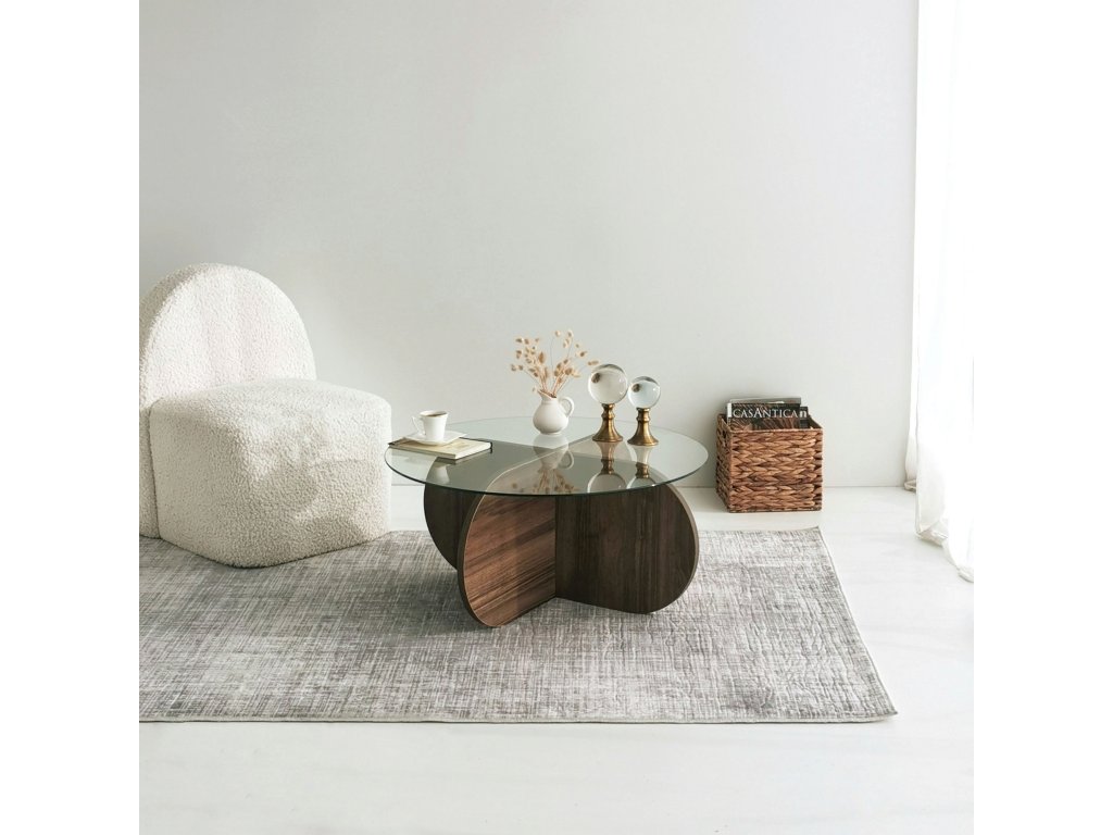 Stolek SHRINE je navržen tak, aby poskytoval ideální prostor pro pohodlné umístění dekorací, knih nebo šálků kávy. Jeho kulatý tvar je bezpečný a snadno se začlení do jakéhokoliv interiéru. Skleněné prvky spolu s ořechovým dekorem vytvářejí harmonii mezi moderním a přírodním stylem.