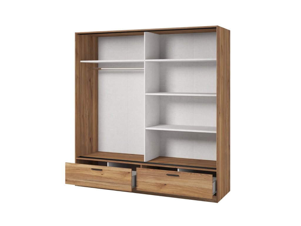Tato prostorná šatní skříň je ideální volbou pro organizované ukládání oblečení a dalších nezbytností. Kvalitní LTD materiál zaručuje dlouhou životnost a snadnou údržbu. Díky praktickému vnitřnímu uspořádání poskytuje skříň dostatek prostoru pro vše, co potřebujete mít po ruce.