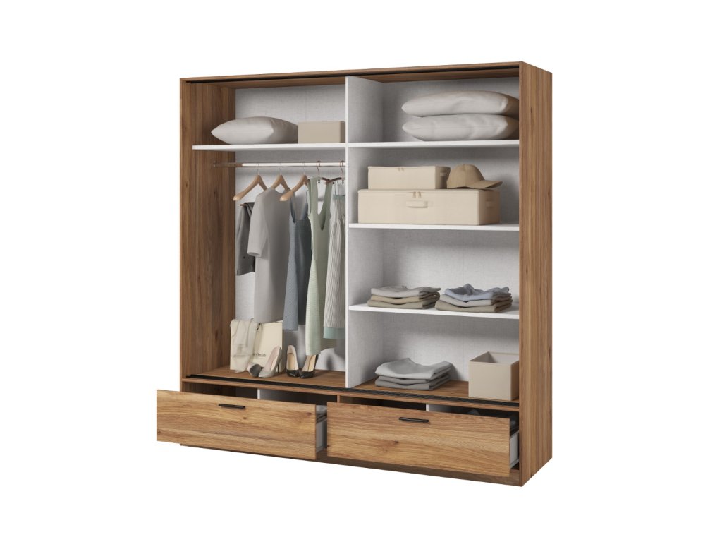 Šatní skříň SIGMA nabízí dostatek úložného prostoru pro vaše oblečení a doplňky. Díky svému modernímu a nadčasovému designu se skvěle hodí do každé ložnice.