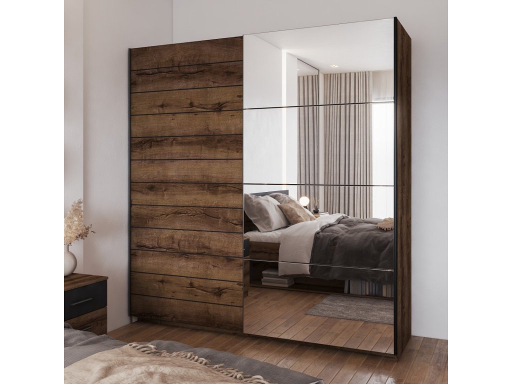 Skříň poskytuje praktické vnitřní uspořádání s policemi a šatní tyčí pro zavěšení oblečení. Kvalitní LTD materiál zajišťuje odolnost a dlouhou životnost. Díky svým rozměrům je ideální do větších ložnic, kde nabídne dostatek prostoru pro vaše věci a zároveň podtrhne elegantní vzhled interiéru.