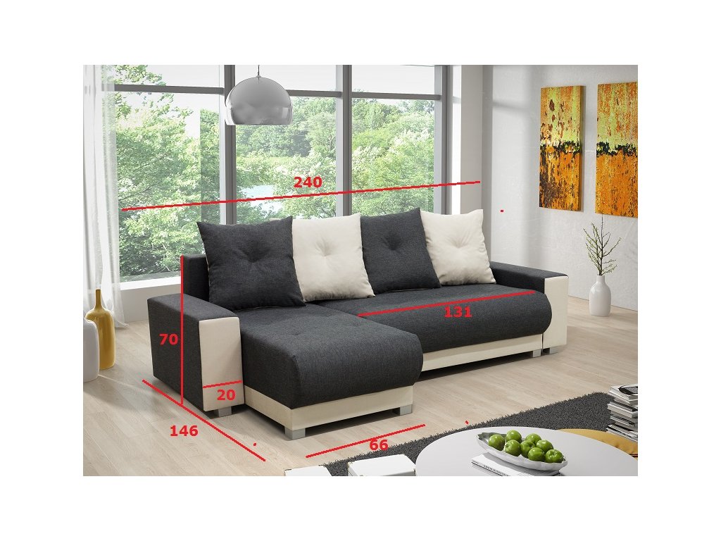 Rohová sedačka SIGNIA patří k menším sedačkám. Moderní design se pojí s efektním polštářovým provedením opěrek a jemným prošitím na sedací části. Rovné linie sedačky jsou propojeny s dvoubarevným provedením, což znásobí unikátnost tohoto nábytku. K sedačce patří také nenápadné malé nožičky (2 cm). Umístění rohu je univerzální (levé i pravé) a můžete si jej zvolit přímo při skládání ve vašem pokoji. Sedačka má funkci rozkladu a nabízí spací plochu o rozměrech 133 x 200 cm. Sedací souprava má pevnou konstrukci, vyrobenou v kombinaci dřeva a LTD desky. Sedací část je vyrobena v kombinaci zvlněné pružiny a pěny T 30. Součástí sedačky jsou 4 polštáře s uzavíráním na zip. Sedačka je čalouněna v látce NEO 15 (černá barva) a NEO 17 (zelená barva) . V nabídce máme i další zajímavá a výrazná barevná provedení. Celkový rozměr sedačky je 240 x 144 cm. Výška sezení je 37 cm, výška opěradla je 68 cm. Hloubka sedu je 67 cm.Doplňkové parametry
