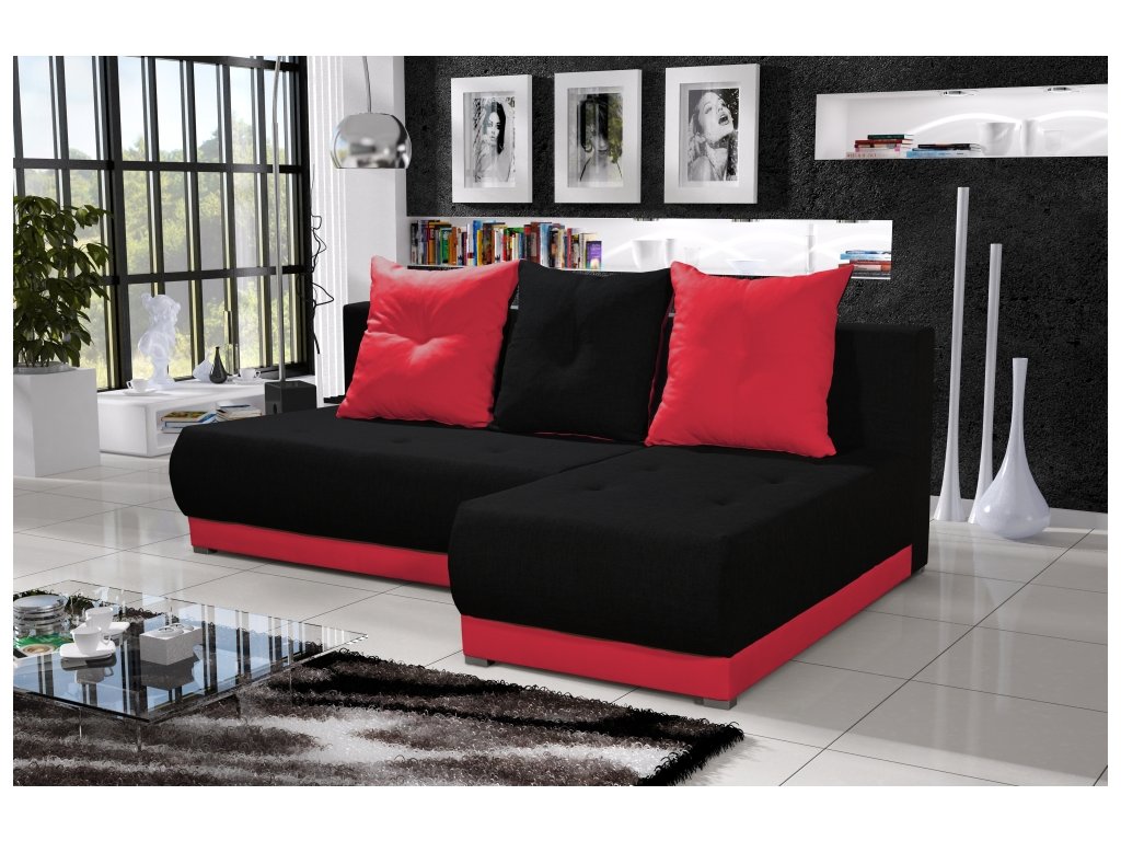 Rozkládací rohová sedačka SIGNIA je svými rozměry vhodná i do menších obýváků. Obsahuje jeden praktický úložný prostor, vhodný na ložní prádlo či na jiné věci, které potřebujete uskladnit. Určitě vás potěší funkce rozkladu, díky které můžete sedačku využít jako postel pro případnou návštěvu či dovádění s dětmi. Má univerzální roh, takže si ji můžete smontovat na pravou nebo levou stranu, dle potřeb. Čalounění sedačky je v černé a červené barvě kvalitní látky NEO. Sedačka je vyrobena z masivního dřeva a dřevotřísky. Obsahuje pěnu PU T30 a vlnovcové pružiny, což vám zajistí to nejlepší pohodlí. Výška sedáku 37 cm. Hloubka sedáku 67 cm. Sedačka obsahuje tři polštáře. Jejich rozměry jsou: 55x55 cm. Mají praktické zipové zapínání. Má také praktické a moderní nožičky o šířce 2.5 cm. Po rozložení je velikost sedačky 200x133 cm. Dodáváme v demontovaném stavu.Doplňkové parametry