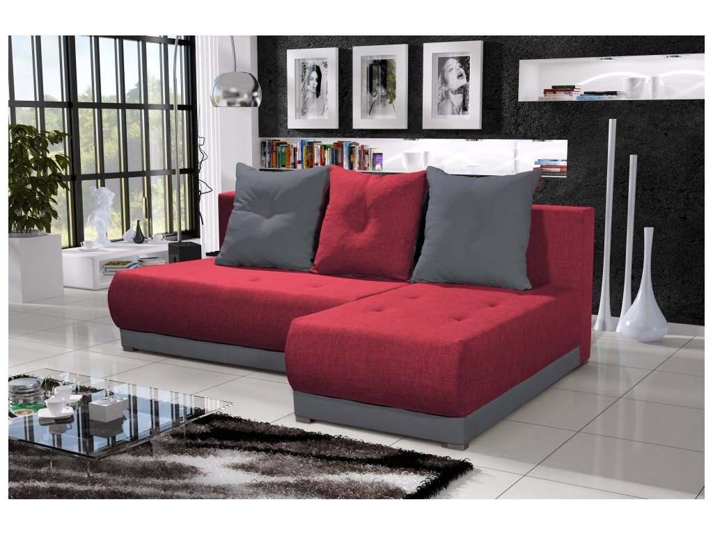 Rozkládací rohová sedačka SIGNIA je svými rozměry vhodná i do menších obýváků. Obsahuje jeden praktický úložný prostor, vhodný na ložní prádlo či na jiné věci, které potřebujete uskladnit. Určitě vás potěší funkce rozkladu, díky které můžete sedačku využít jako postel pro případnou návštěvu či dovádění s dětmi. Má univerzální roh, takže si ji můžete smontovat na pravou nebo levou stranu, dle potřeb. Čalounění sedačky je v červené a šedé barvě kvalitní látky NEO. Sedačka je vyrobena z masivního dřeva a dřevotřísky. Obsahuje pěnu PU T30 a vlnovcové pružiny, což vám zajistí to nejlepší pohodlí. Výška sedáku 37 cm. Hloubka sedáku 67 cm. Sedačka obsahuje tři polštáře. Jejich rozměry jsou: 55x55 cm. Mají praktické zipové zapínání. Má také praktické a moderní nožičky o šířce 2.5 cm. Po rozložení je velikost sedačky 200x133 cm. Dodáváme v demontovaném stavu.Doplňkové parametry