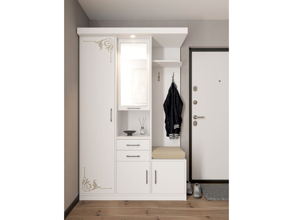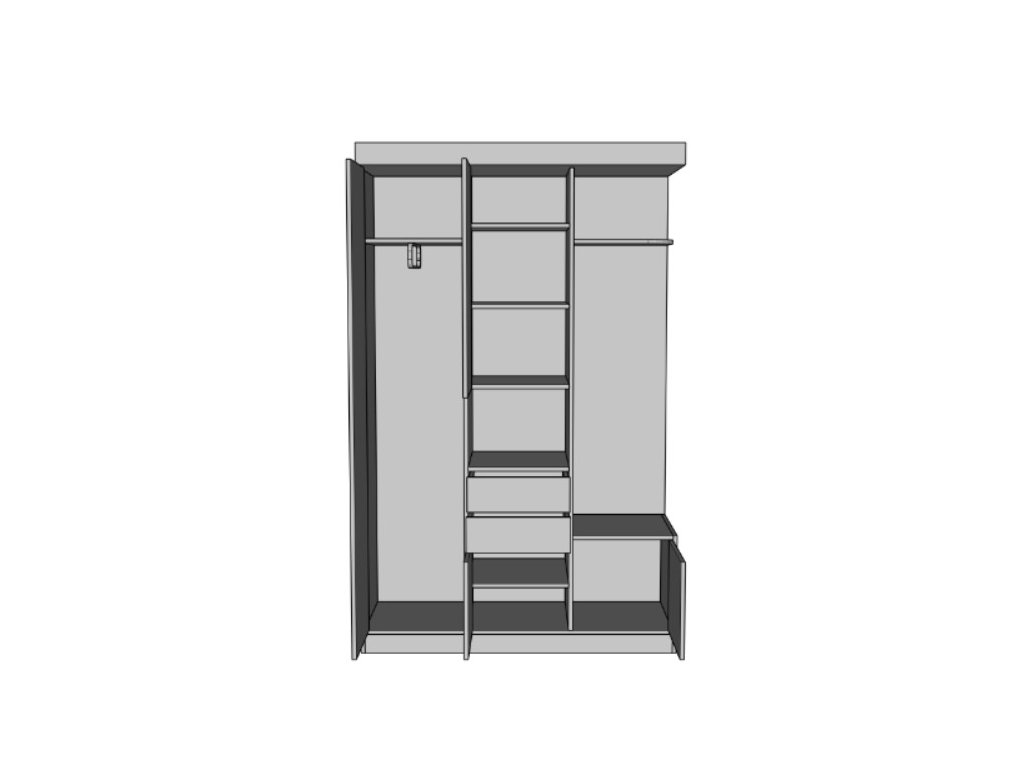 - Úložný prostor: 2 zásuvky, četné police, šatní skříň