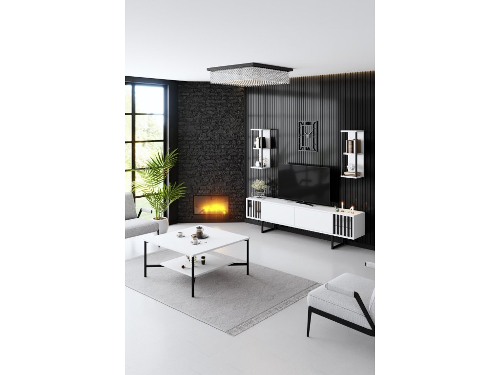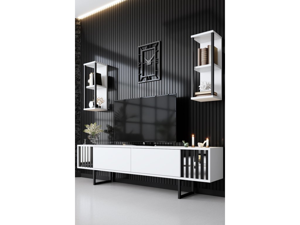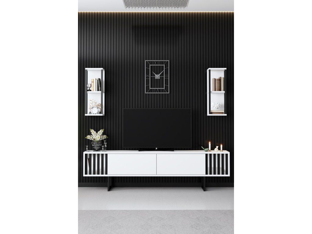 Vylepšete atmosféru svého obytného prostoru s naší úžasnou televizní skříňkou. Tato skříňka, vyrobená ze 100% dřevotřísky s melaminovým povlakem, je nejen odolná, ale také dodá vašemu domovu nádech elegance. Kombinace bílé a černé barvy vytváří výrazný kontrast, který okamžitě upoutá pozornost vašich hostů.