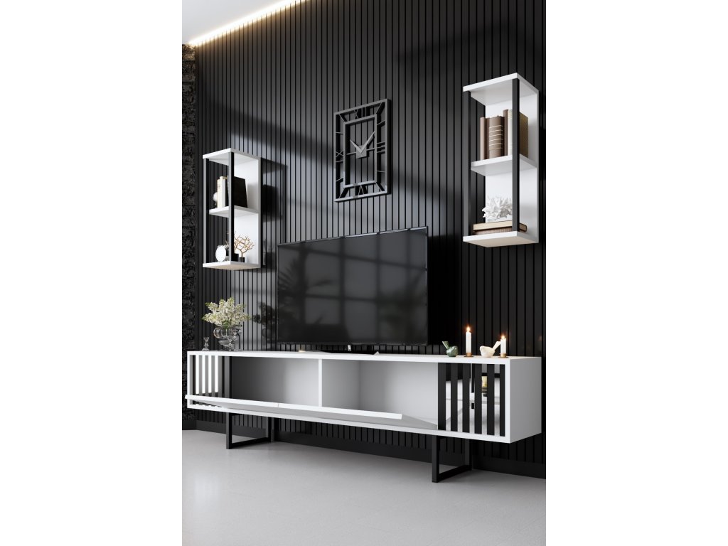 | Sestava obsahuje: | TV stolek 180x30x48cm, 2x nástěnná police 22x21x60cm |