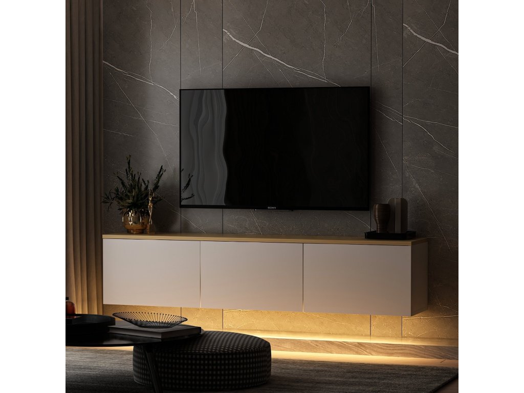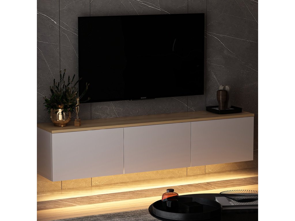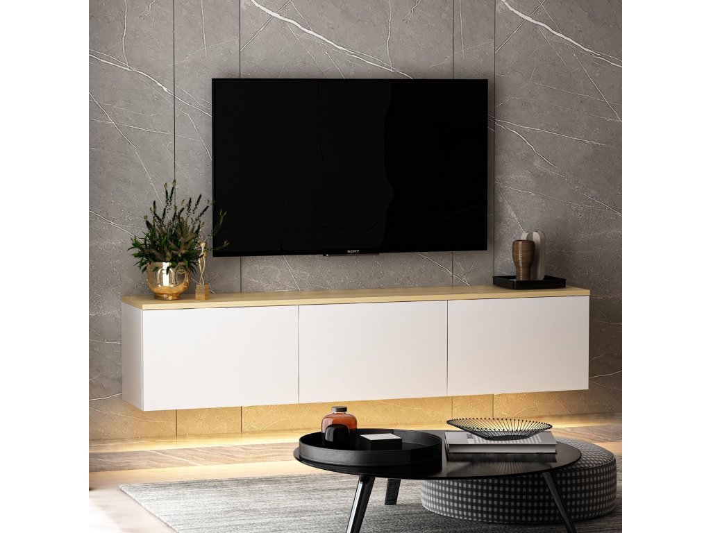 SIMA závěsný TV stolek s LED osvětlením, bílá / dub