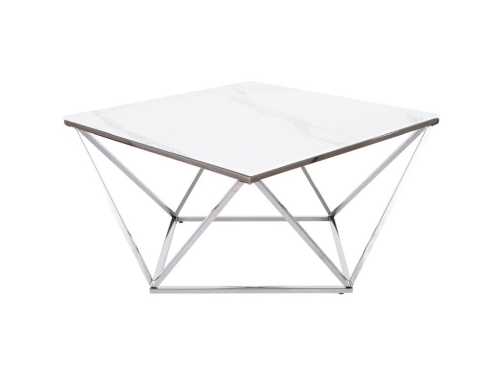 SIMON A II skleněný konferenční stolek, mramor / stříbrná