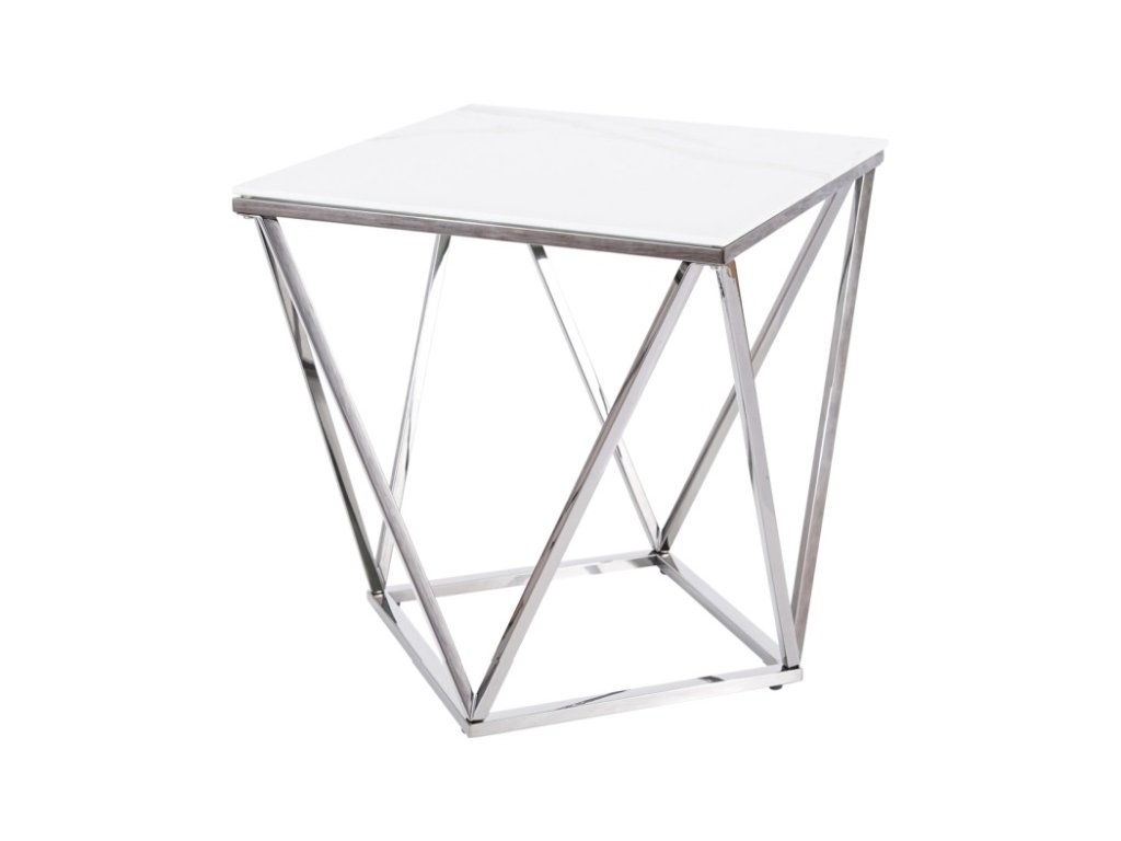Konstrukce stolku je z nerezavějící oceli, deska stolu je z tvrzeného skla s efektem mramoru. Barva konstrukce je stříbrná.