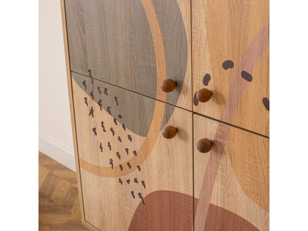 Komoda SIMON je navržena tak, aby poskytovala dostatek úložného prostoru za čtyřmi plnými dvířky. Perfektně poslouží k uskladnění nádobí, knih nebo dekorací, které chcete mít elegantně uspořádané. Multicolor provedení přidává na originalitě a stane se středobodem vašeho interiéru.