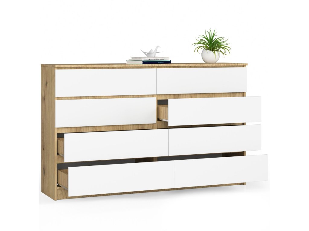 Široká a vysoká komoda HILDA160, dub artisan / bílá