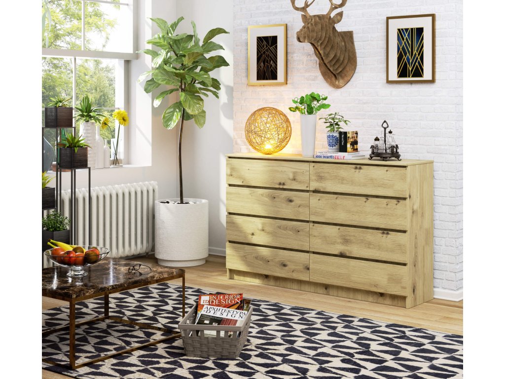 Široká a vysoká komoda HILDA160, dub Artisan