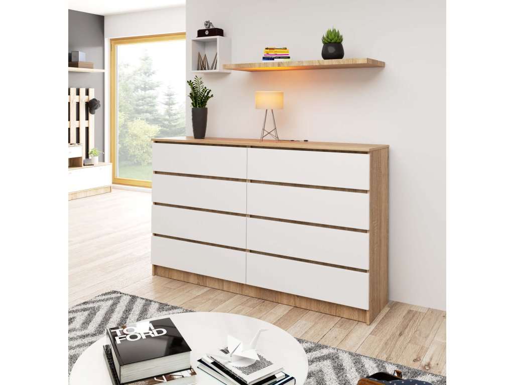 Komoda HILDA160: Symbióza dubu Sonoma a čisté bílé