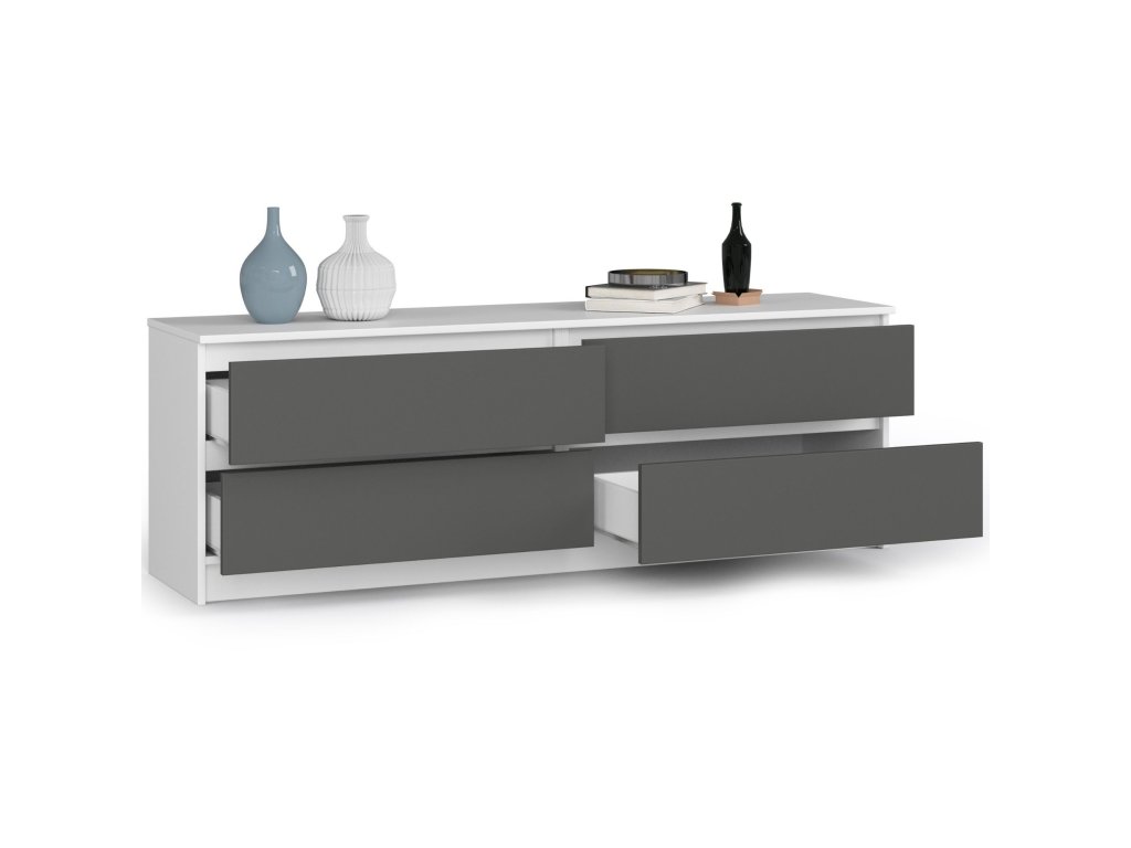 MISS160 představuje dokonalou harmonii mezi funkcí a stylem. Tato široká komoda v nádherném bílém a šedém provedení je skutečným klenotem pro každý interiér. Ať už hledáte dokonalý kousek do své ložnice nebo obývacího pokoje, MISS160 je tou správnou volbou.