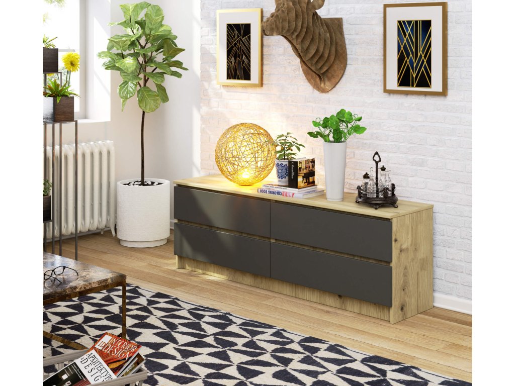 Komoda MISS160: Kombinace dubu Artisan a grafitem