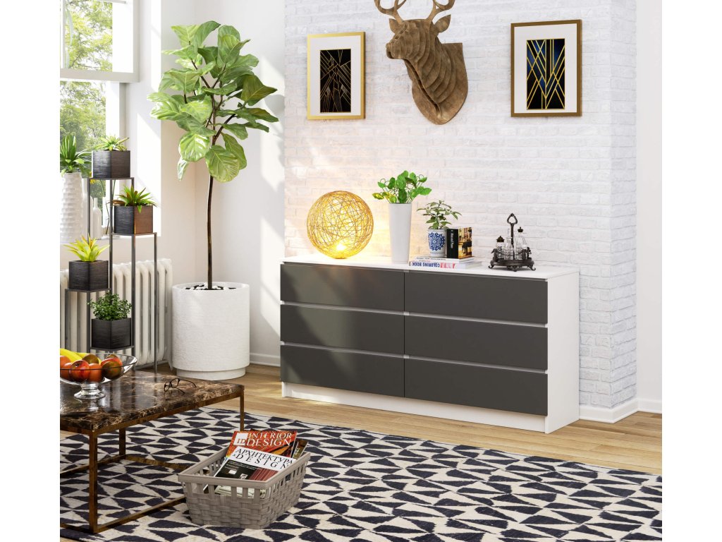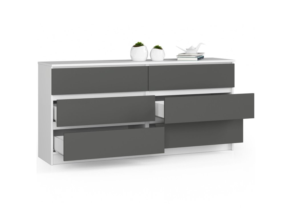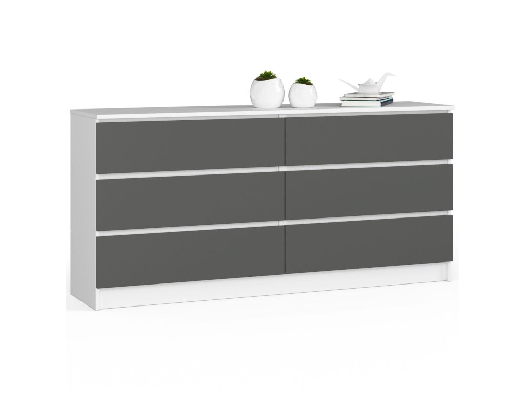 Široká komoda, skříňka TOM160, bílá / grafit