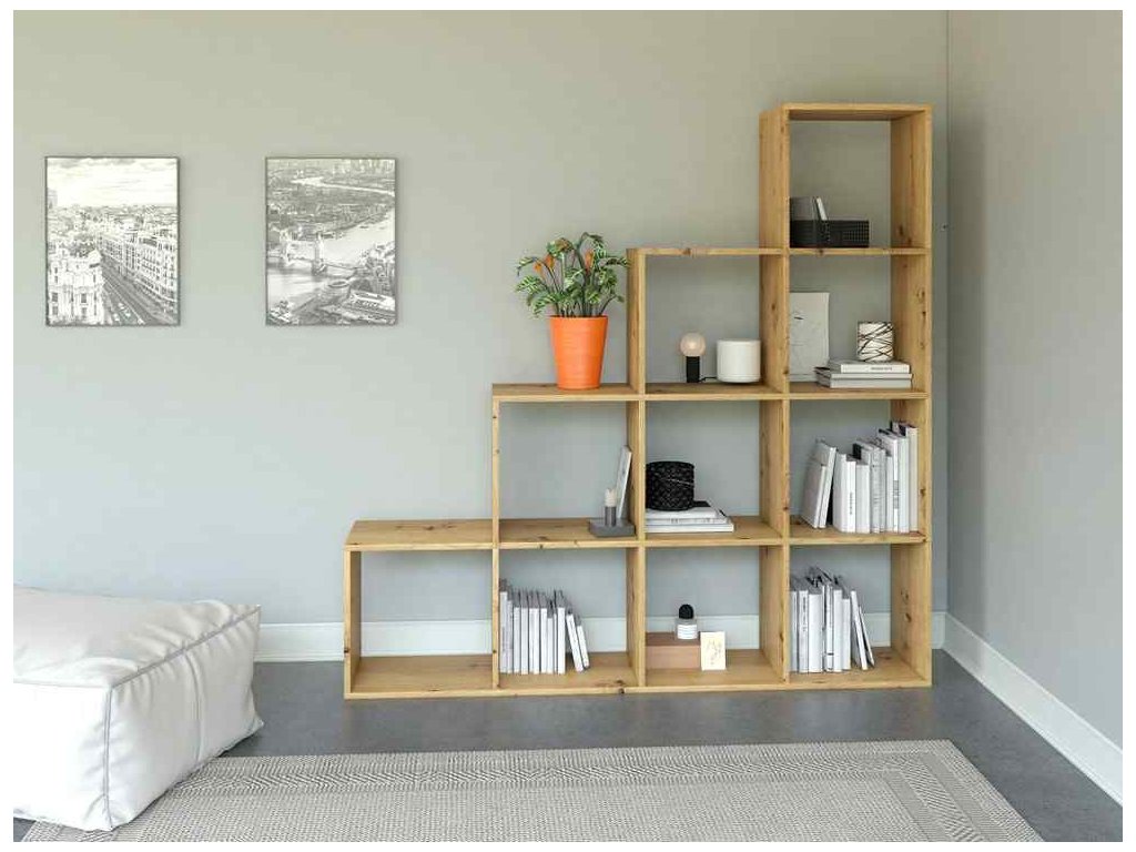 Představujeme PLANO40, stylový a multifunkční kus nábytku, který je ideální do každého obývacího pokoje. Tento regál, který může sloužit i jako knihovna, je vyroben z kvalitního materiálu LTD a jeho design v barvě dub Artisan přináší do vašeho domova teplou a příjemnou atmosféru.