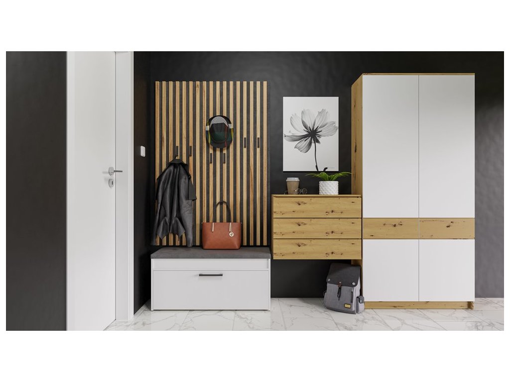 - Ideální volba pro ty, kdo preferují široký, funkční a vizuálně čistý prvek do své předsíně.