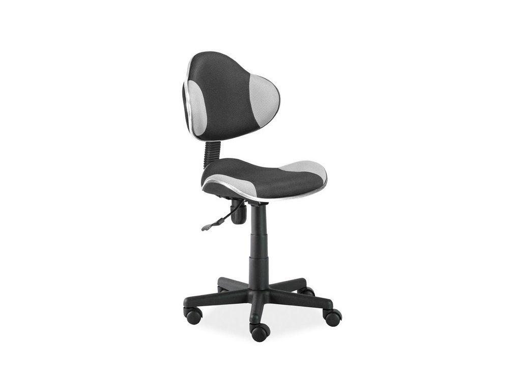 SK-G2 je otočné kancelářské křeslo v atraktivním provedení. Je vhodné do každého dětského či studentského pokoje. Křeslo je výškově nastavitelné. Je čalouněno kvalitní látkou, ve spojení barev: černá, šedá. Křeslo disponuje plastovým nosným křížem. Kolečka jsou vyrobena z plastu. Rozměry: Výška: 80-92 cm Výška sezení: 38 - 50 cm Šířka: 48 cm Hloubka: 41 cm Nosnost křesla: 90 kg. Dodáváme v demontovaném stavu.