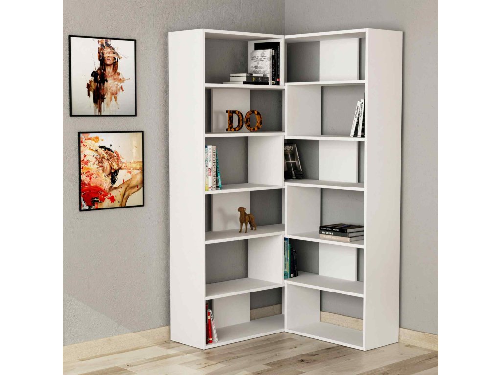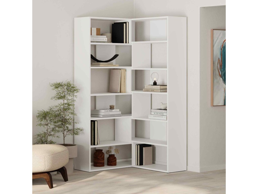 Obohaťte svůj obývací pokoj o jedinečný prvek s MAURICIO no.4. Tento rohový regál v bílém provedení představuje dokonalou kombinaci skandinávské elegance a praktické funkčnosti.