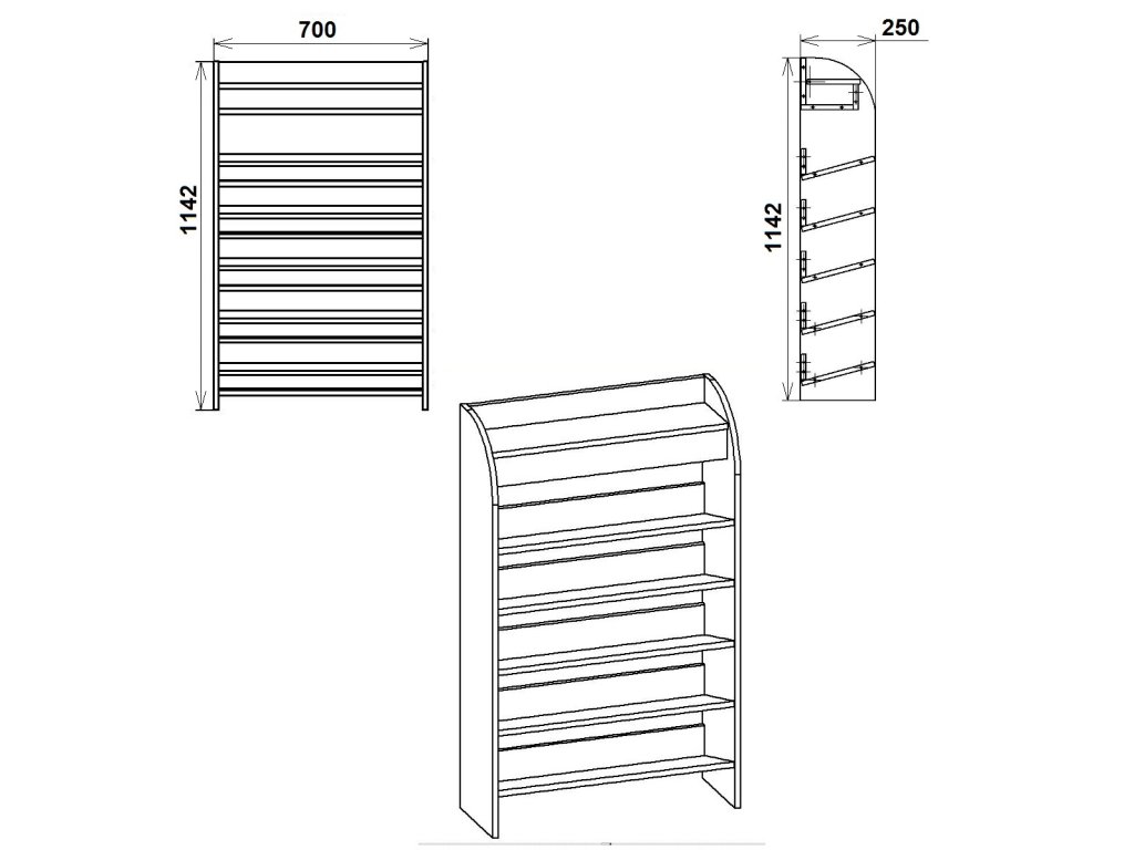 Jednoduchá skříňka na boty TOPAS-10 se díky menším rozměrům a pěti šikmým policím hodí i do menších síní.