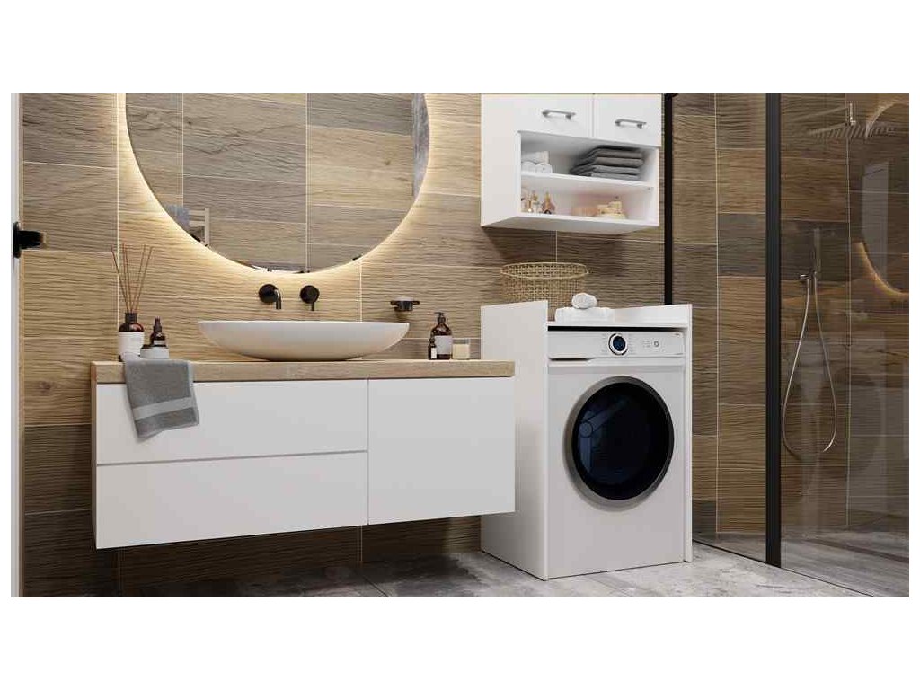- Dodatečné informace: Tato skříňka může být také využita jako stojan pro skříňku nad pračku, což zvyšuje její multifunkčnost a adaptabilitu v různých koupelnových prostorách.