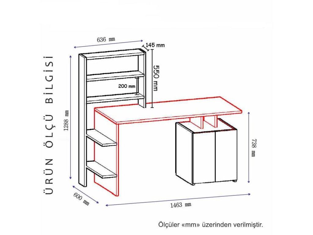 Studijní stůl je dodáván s knihovnou, kterou lze připevnit ke zdi, čímž maximalizuje prostor na podlaze a poskytuje další úložné prostory. Ať už máte malou studovnu nebo prostornou kancelář, tento stůl je navržen tak, aby se bez problémů hodil do jakéhokoli prostoru.